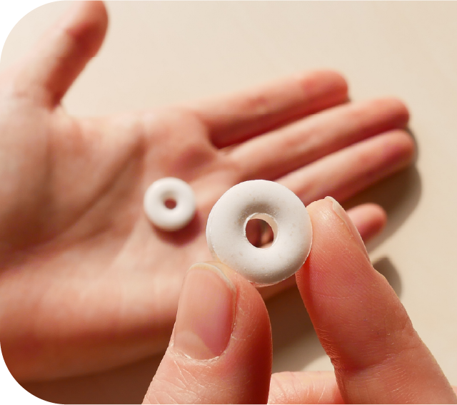 - ●Chúng tôi đã mang sản phẩm sản xuất thử cho bác sĩ nhi khoa, bác sĩ răng miệng ngoại khoa và bác sĩ đang nghiên cứu việc trẻ em vô tình nuốt phải, và xin ý kiến của họ.