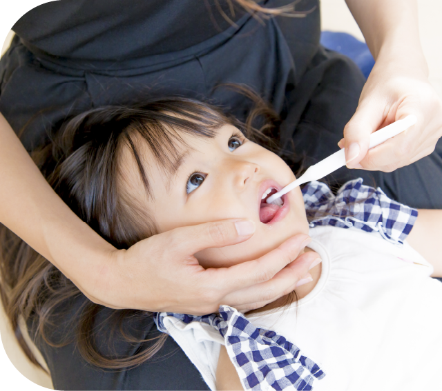- ●Nếu trẻ có vẻ ghét nằm đánh răng, thì có thể cho đứng và đánh từ phía sau.