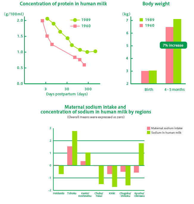 Khi so sánh kết quả năm 1960 và 1989, thì thấy rằng nồng độ protein trong sữa mẹ đã cao hơn vào năm 1989.