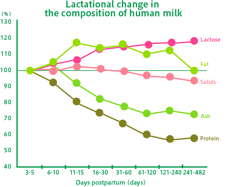 Sữa mẹ chứa nhiều thành phần khác nhau và sau khi sinh, người ta đã phát hiện ra rằng một số thành phần thay đổi khác nhau theo thời gian trôi qua.